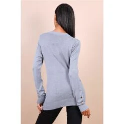 Damen Feinstrick-Longpullover Mit Goldfarbenen Knöpfen Grau